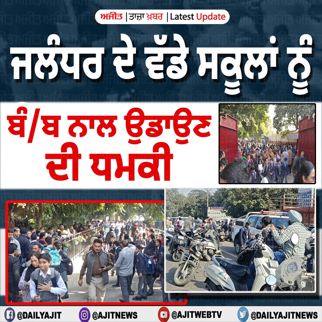 ਜਲੰਧਰ ਦੇ ਵੱਡੇ ਸਕੂਲਾਂ ਨੂੰ ਬੰ/ਬ ਨਾਲ ਉਡਾਉਣ ਦੀ ਧਮਕੀ