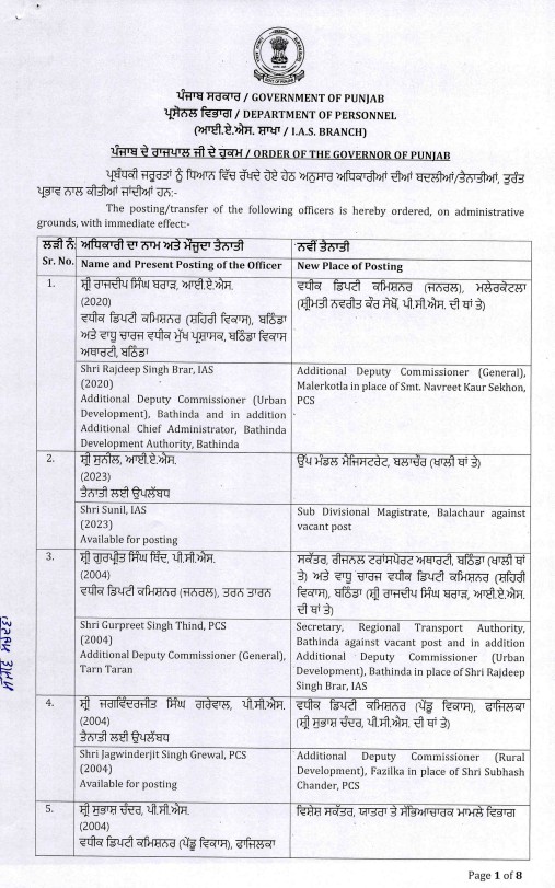 ਪੰਜਾਬ ਸਰਕਾਰ ਨੇ ਆਈਏਐਸ ਤੇ ਪੀਸੀਐਸ ਅਧਿਕਾਰੀਆਂ ਦੀਆਂ ਕੀਤੀਆਂ ਬਦਲੀਆਂ