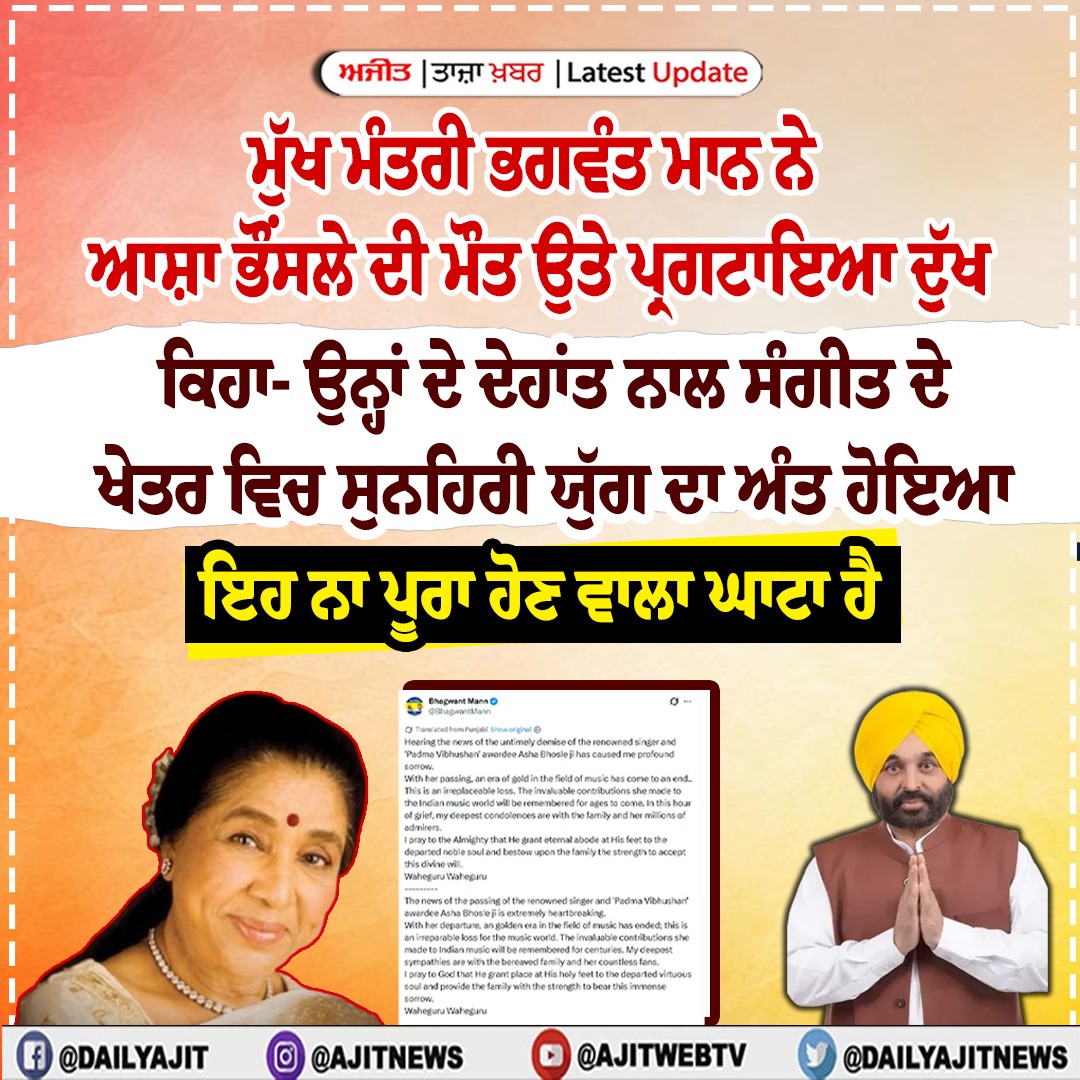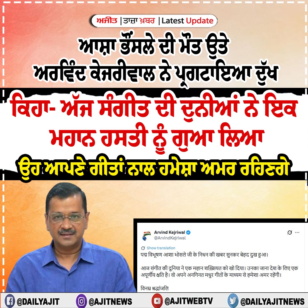 ਖੜਗੇ ਨੇ ਪ੍ਰਸਿੱਧ ਗਾਇਕਾ ਆਸ਼ਾ ਭੌਂਸਲੇ ਦੇ ਦੇਹਾਂਤ 'ਤੇ ਸੋਗ ਪ੍ਰਗਟ ਕੀਤਾ
